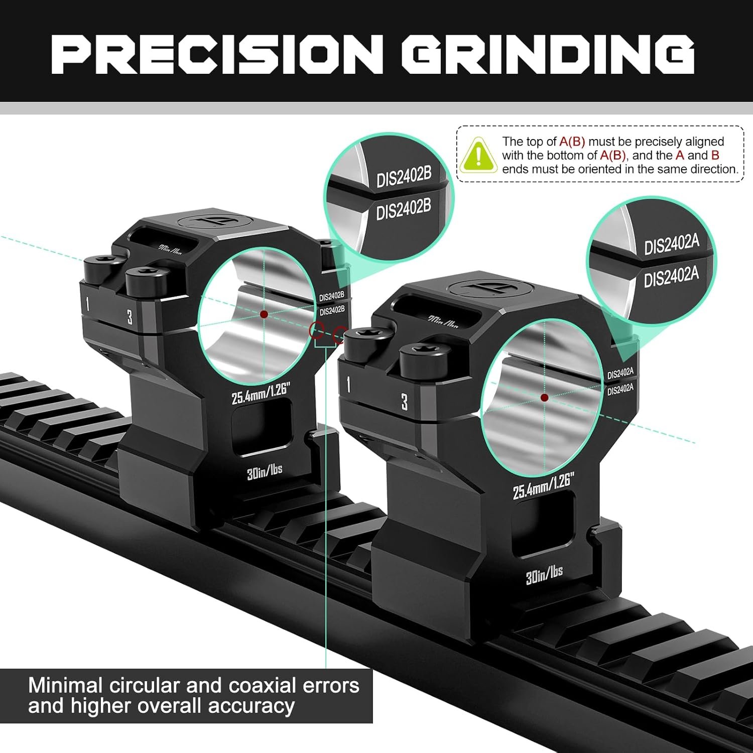 7075 Series Aluminum 30mm 34mm 1 inch Scope Rings, High Precision Pre-lapped