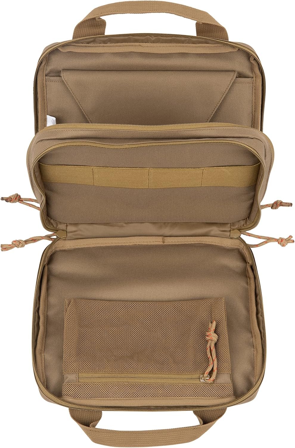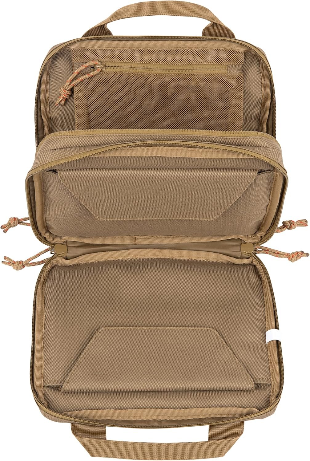 2-GUN PISTOL CASE: Laser cut MOLLE panel system allows you to customize & attach accessories for when you need them most—handgun case exterior measures 10-inches long x 8-inches wide x 3-inches high.