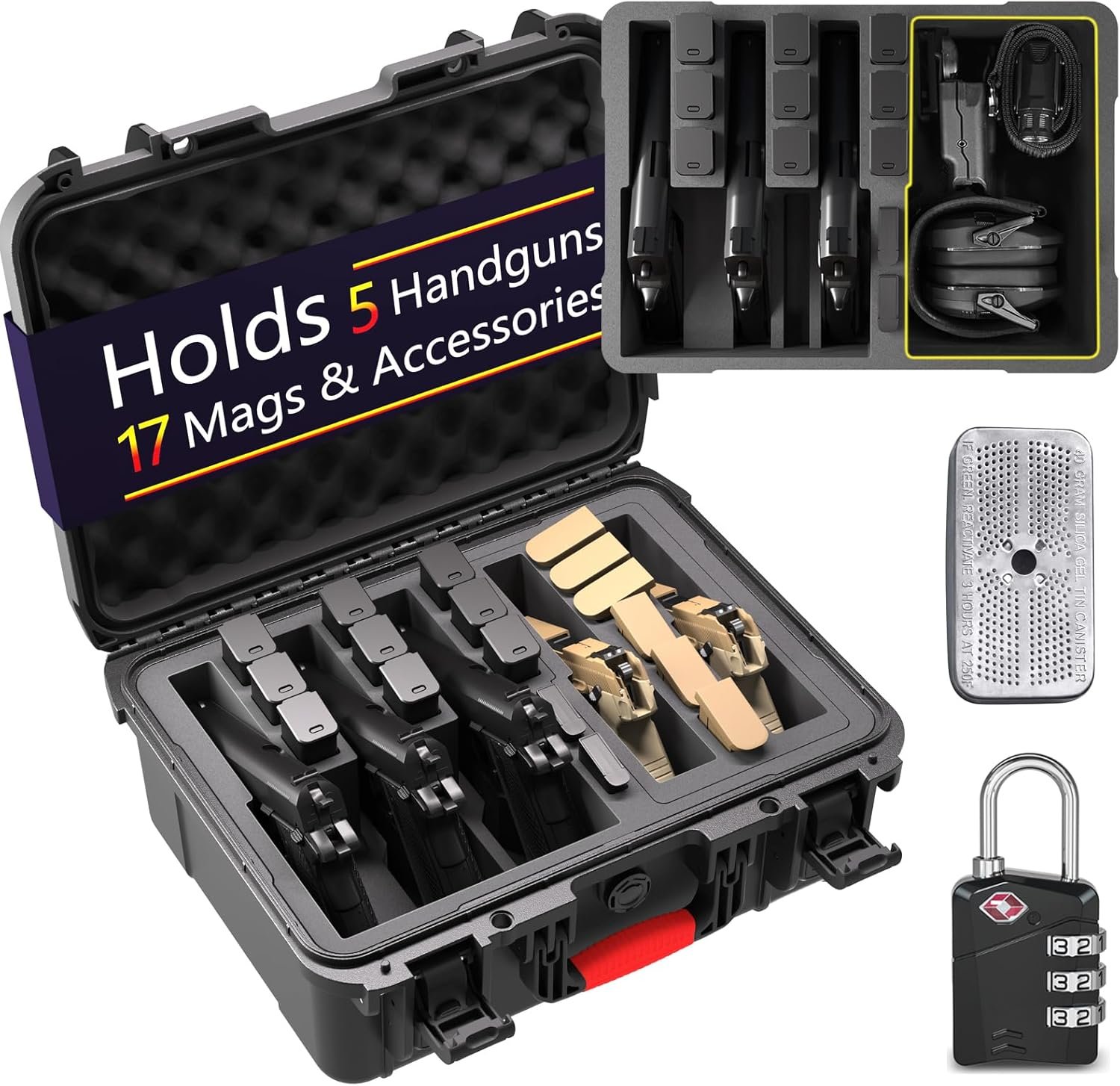 𝗕𝘂𝗶𝗹𝘁 𝗳𝗼𝗿 𝗧𝗿𝗮𝘃𝗲𝗹 𝗮𝗻𝗱 𝗟𝗼𝗻𝗴 -Term Storage – TSA-Approved Lock & Silica Gel – Serious Protection Built Includes 1 TSA-compliant combination lock to keep your firearms secure during travel, plus a premium silica gel canister to protect against moisture, rust, and corrosion. No extra purchases needed — everything you need for secure, professional-grade handgun storage is right in the box.