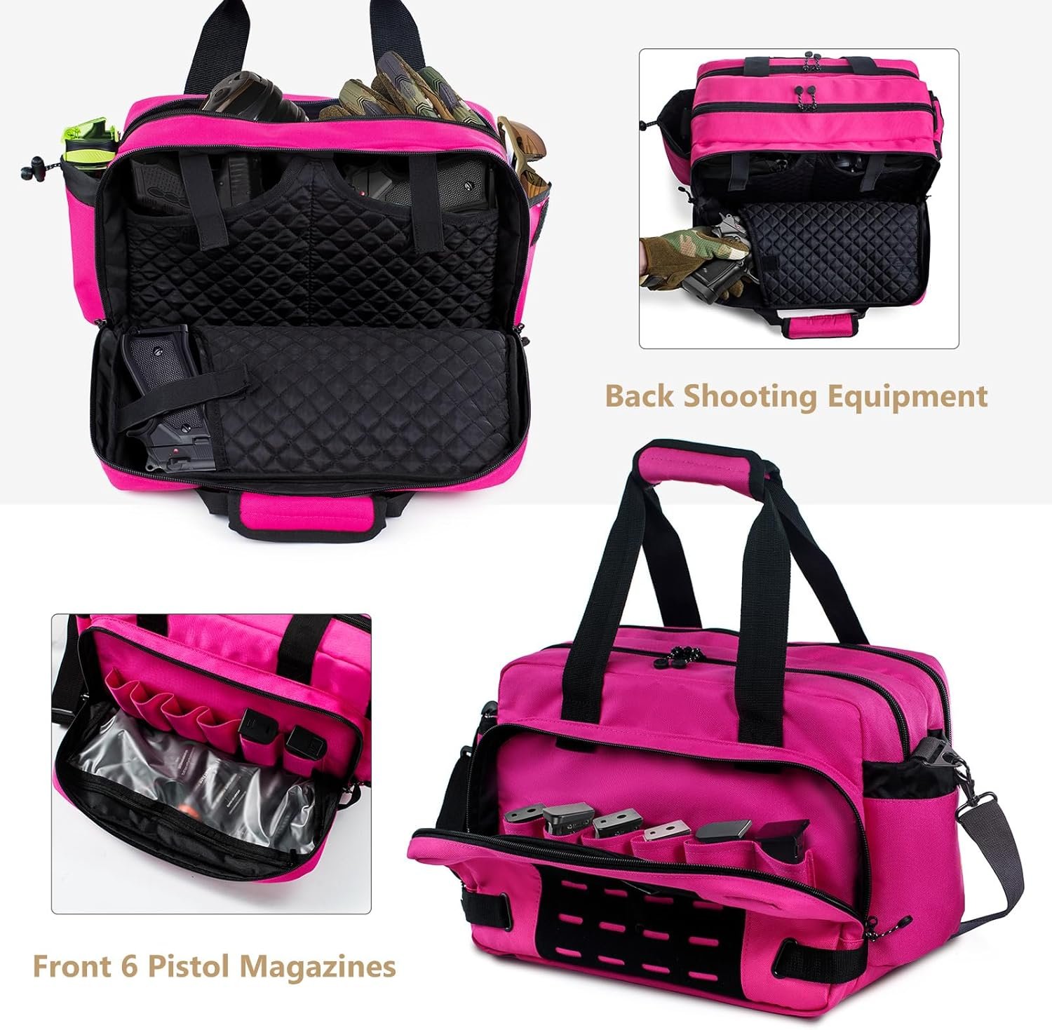 [✔3 Roomy Compartments] – The Front pockets offer 6 Pistol Magazines securely and clear pockets. MOLLE external expansion system for you to attach MOLLE pouches and equipment to carry more range gear and other essentials ;