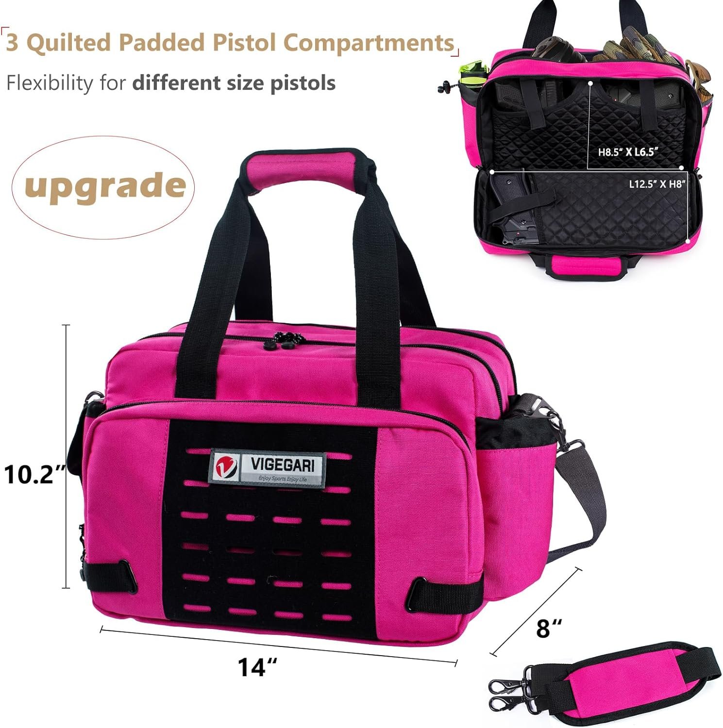 [✔Quilted Padded Pistol Compartment] – 3 quilted padded gun pouches with Touch Fastener vel cro closures secure your handguns. Three pistol pouch’s sizes are different. 2 of the pistol pouches size is 8.5X6.5″ , the larger one is 8X12.5″ . Flexibility for different size pistols.
