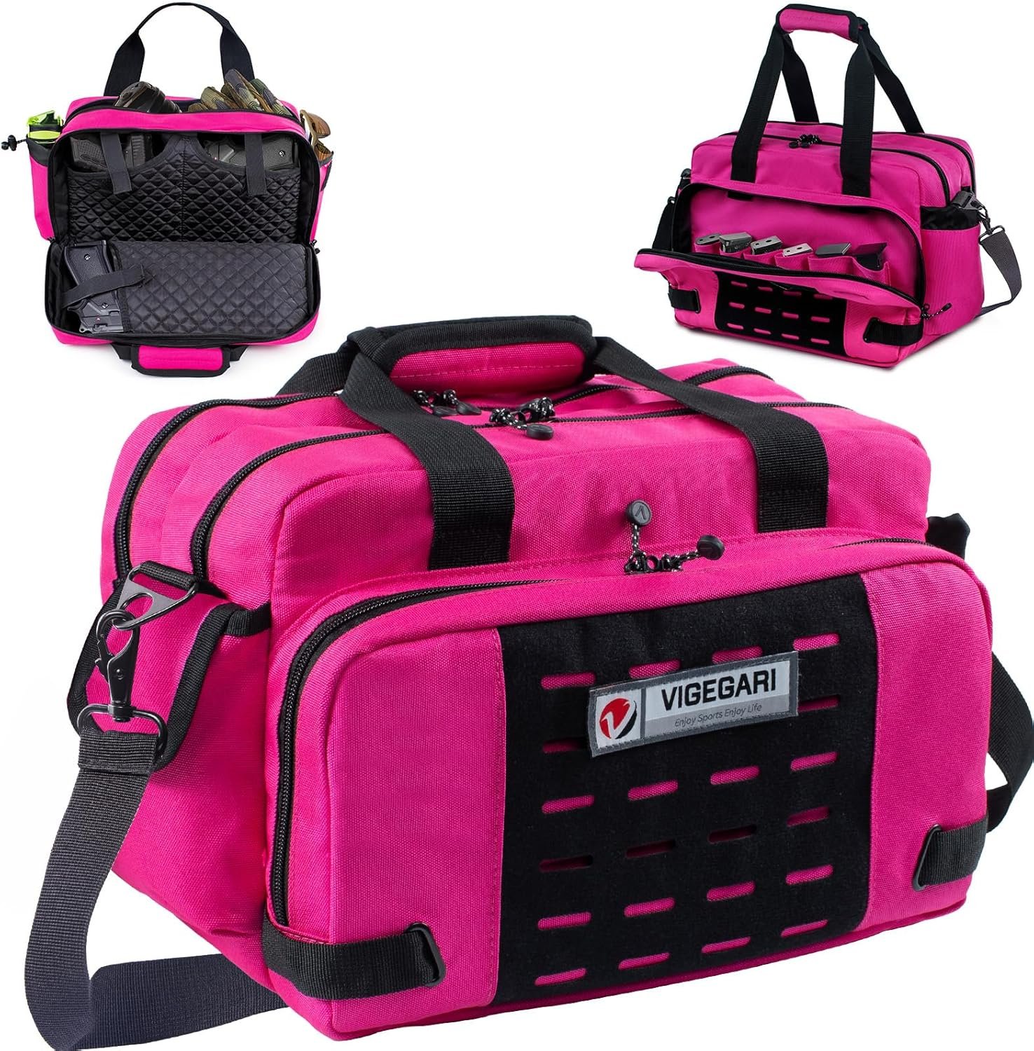 [✔Well Designed & Well Made] – Well made and thoroughly Designed with 3 compartments to Hold 3 Handguns and Most of your range accessories. Made of Heavy-Duty 1200D polyester and padded lining not only to protect gun accessories but also to extend the lifespan of the gun bag.