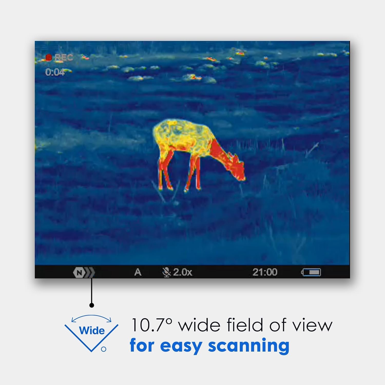 Axion 2 Thermal Imaging: 3 Sensitivity Levels optimize image rendering for superior detection in diverse conditions. Connected filters, precise brightness, and contrast adjustments ensure accurate long-range animal detection in changing weather.