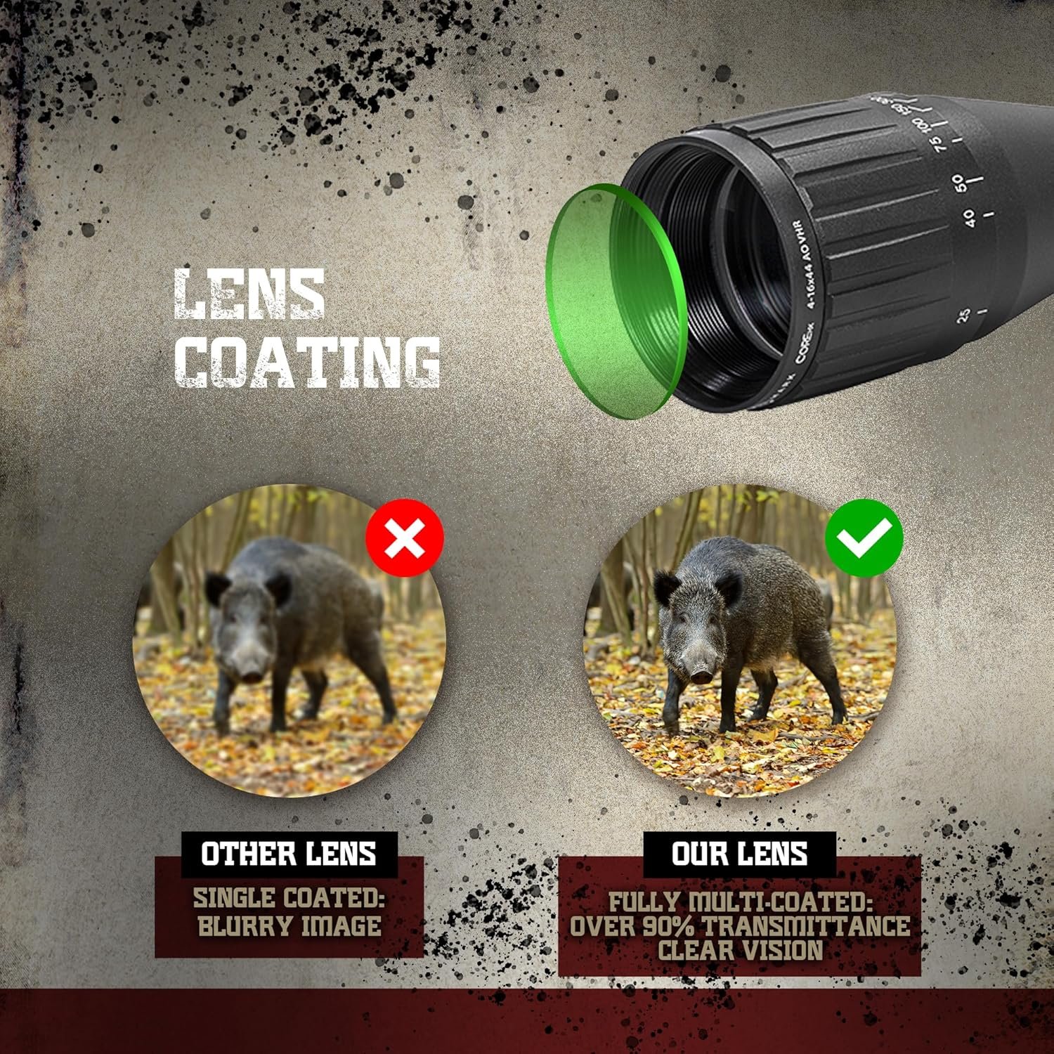 Range Finding Reticle for Whitetail Deer and Coyote: Equipped with a specialized range finding reticle designed to enhance accuracy when targeting predators, deer, and other mid-size game species, ensuring precise shots at various distances.