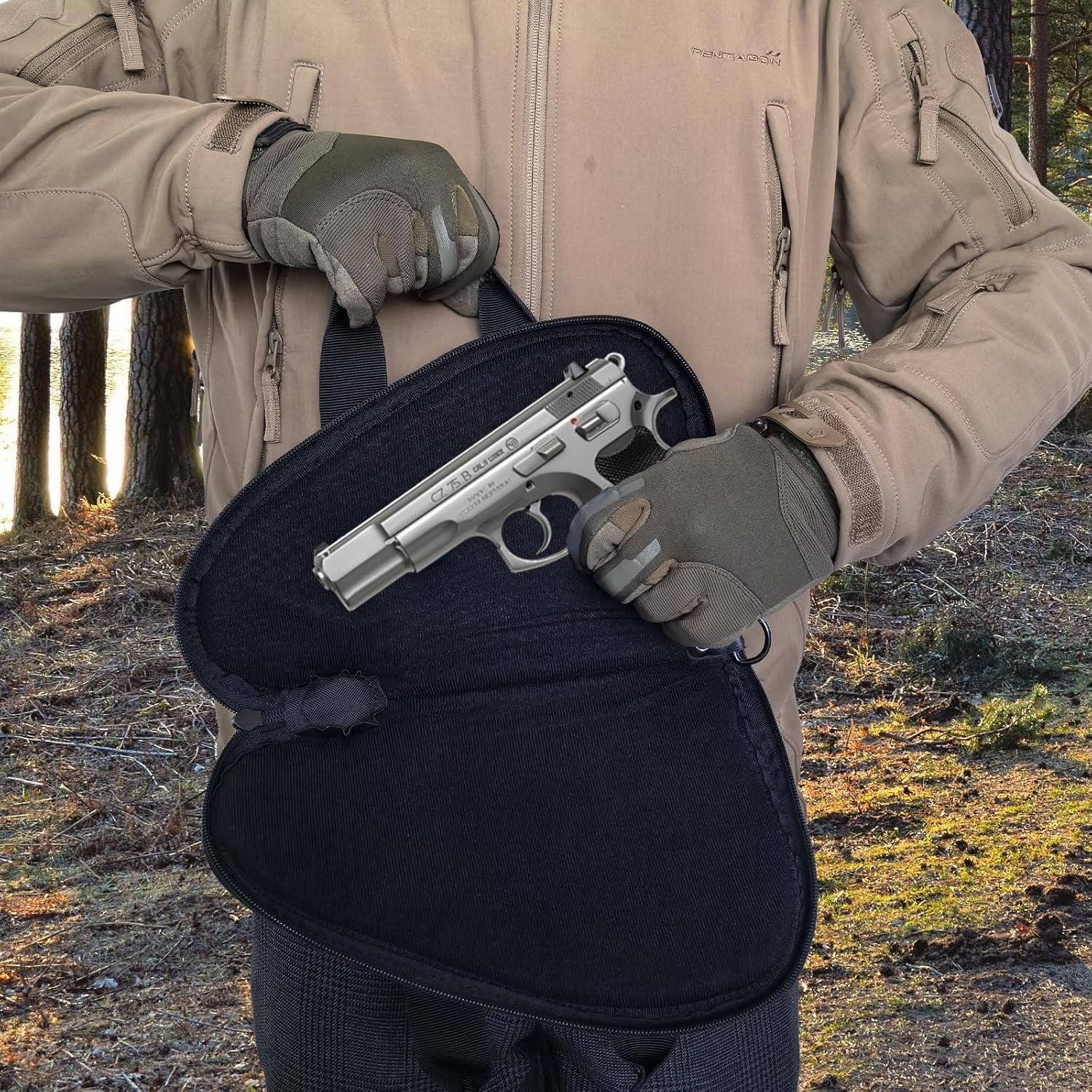 Features a full-length oversized zipper allows for quick and easy access to the pistol.