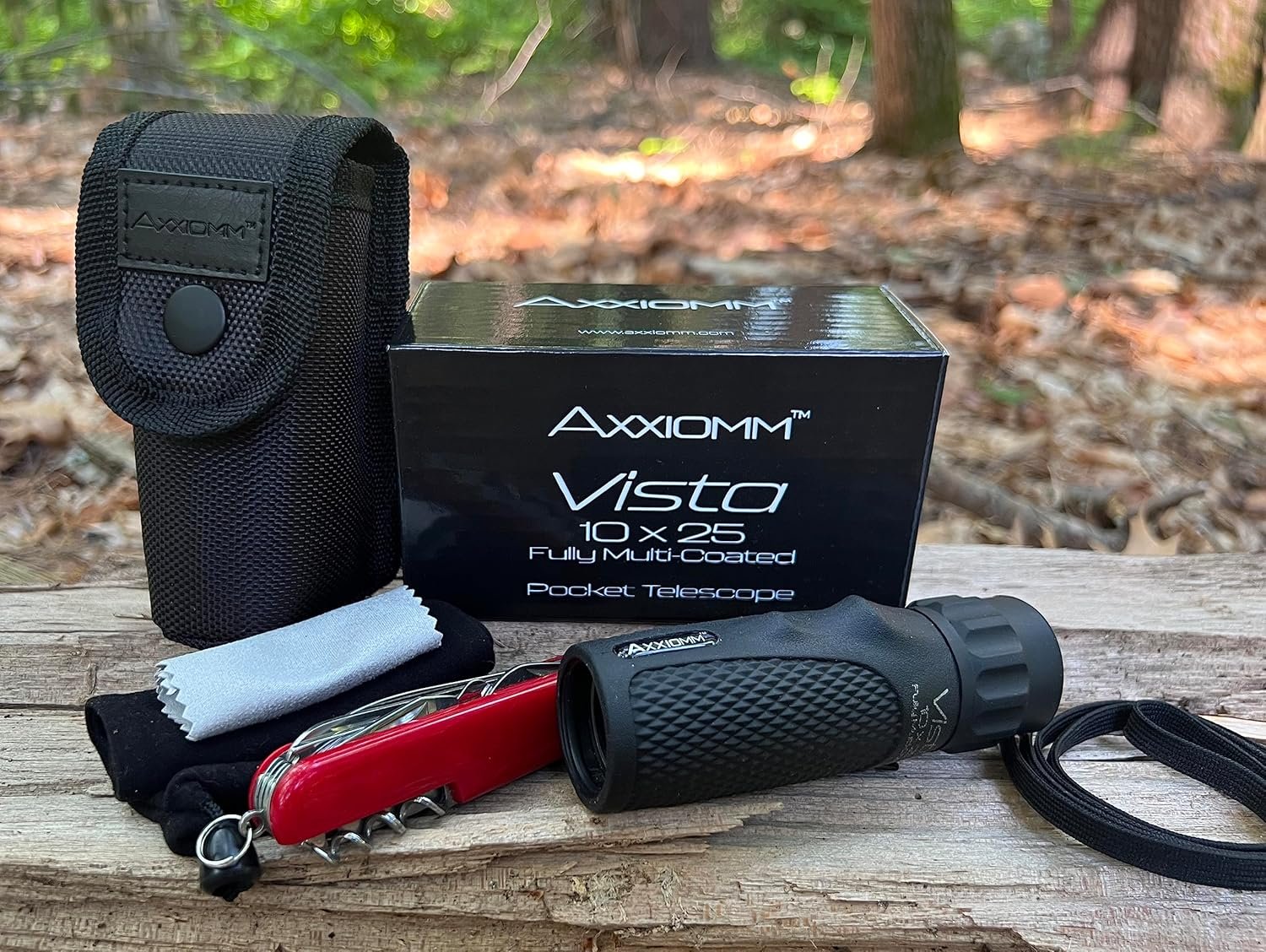 Axxiomm “Vista” 10×25 Pocket Telescope (Monocular) + 11-function Pocket Knife, Premium Holster & Accessories. Fully Multi-Coated Optical Glass for Superior Light Transmission & Maximum Clarity.